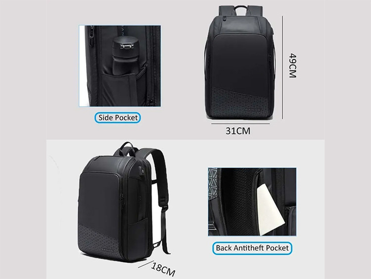 دارای ۳ محفظه اصلی شامل بخش مخصوص لپتاپ، فضای میانی و قسمت جلویی جداگانه