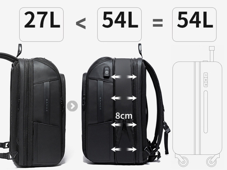 | محفظهها | ۳ محفظه اصلی و لپتاپ (۱۵.۶ اینچی)، تفکیک خشک/مرطوب، جیب پنهان ضدسرقت |